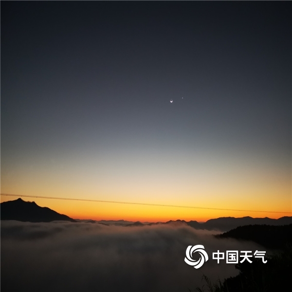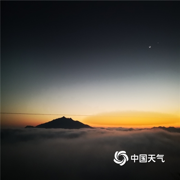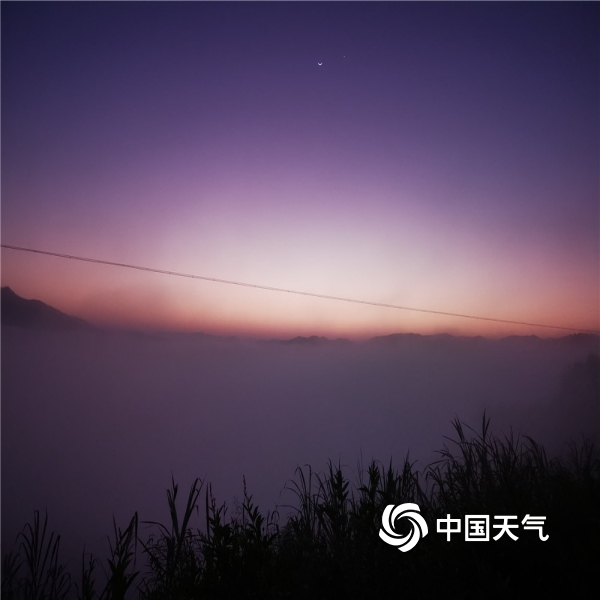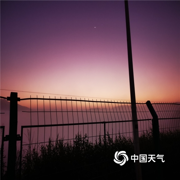 2020年12月01日 09:46昨天(11月30日),云南省临沧市临翔区的日出伴随着一抹动人的色彩。一钩残月迟迟不愿离去,旁有孤星相伴,别具韵味,或橙黄或粉紫的朝霞,在朦胧的浓雾中更显梦幻。(图/文 钟铭芸)