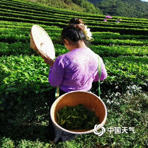 中国天气网讯 12月1日,云南省临沧市耿马县勐撒茶园里人景合一,采茶姑娘们在绿油油的茶园里辛勤地采摘。(图/文 王自荣 杨宏庆)