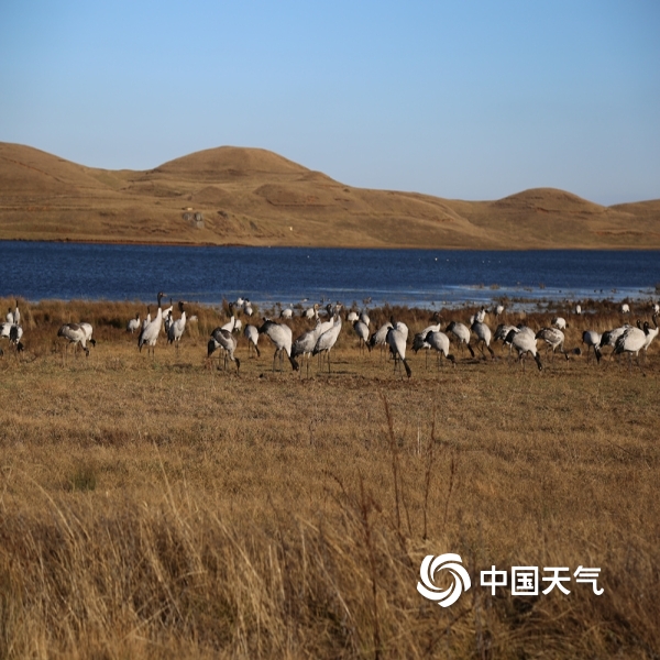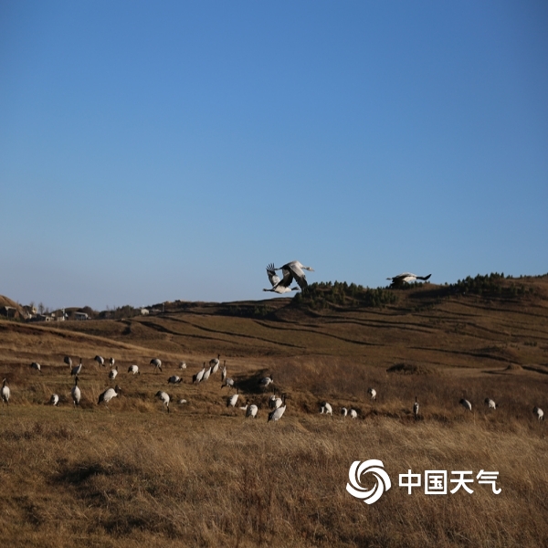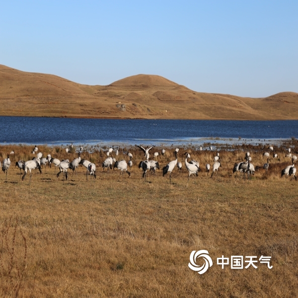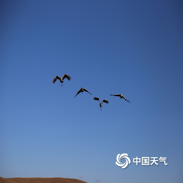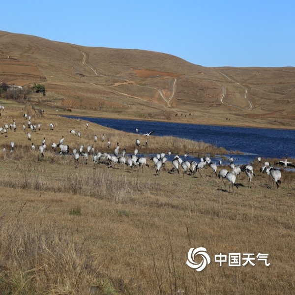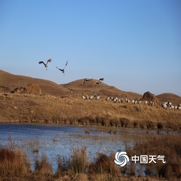 中国天气网讯 又是一年迁徙季,近日大批的黑颈鹤选好了自己的越冬栖息地,在云南昭通大山包大海子湿地嬉戏玩水、展翅飞舞,在高原净土上留下了让人心动的丽姿倩影。图片拍摄于2020年12月7日。(图/张镕)