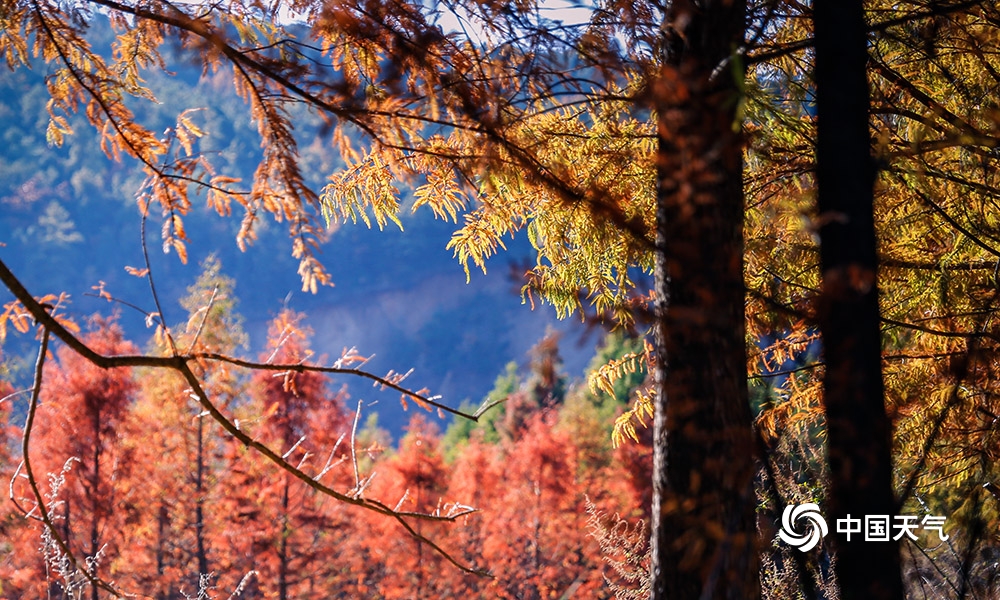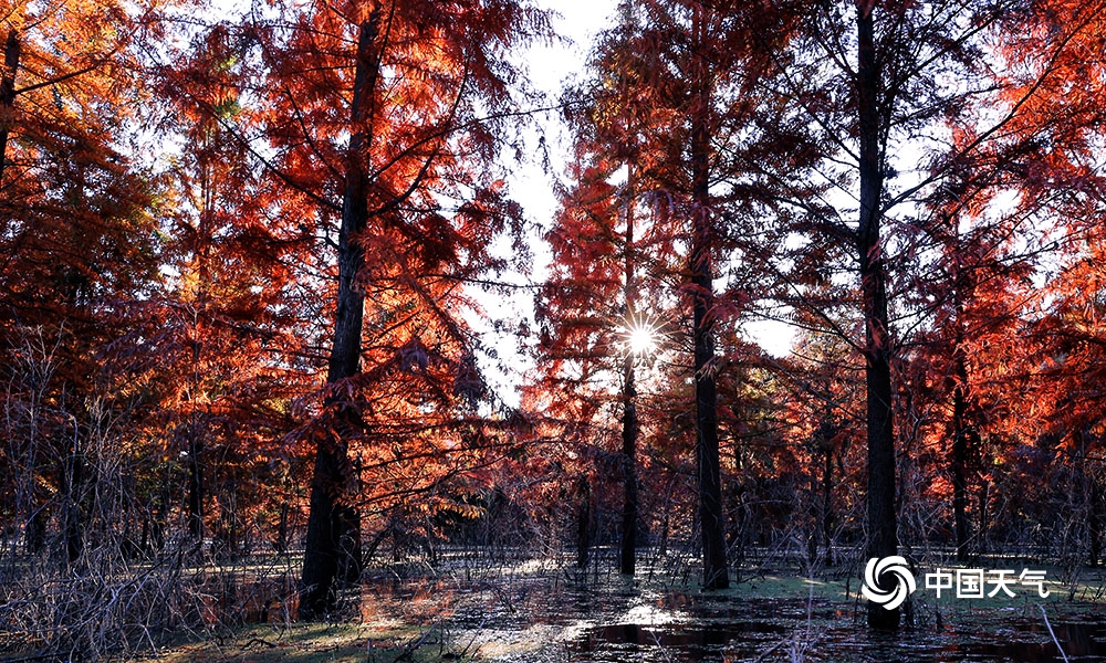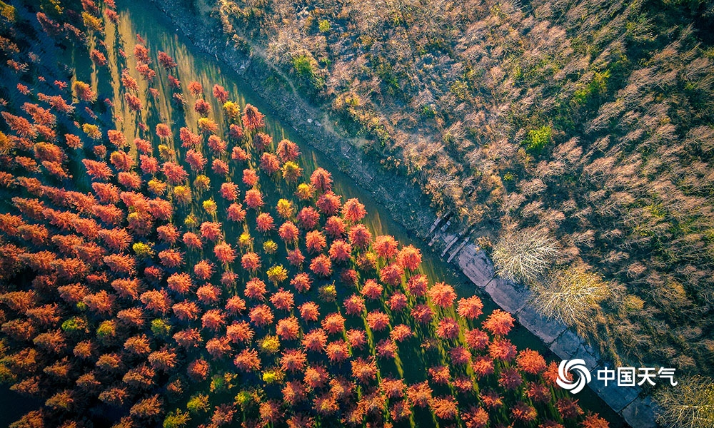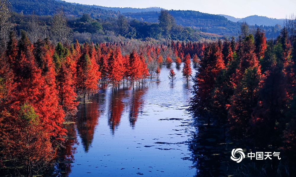 冬日里,昆明嵩明县甸尾村冷水河两岸栽种的水杉已经红透了,将山水染成一幅幅天作的工笔设色长卷,人走过,常常惊起一行行野鸭与白鹭要,美的犹如童话世界。(摄 杜景星)