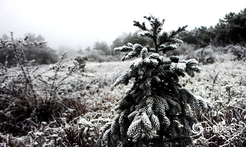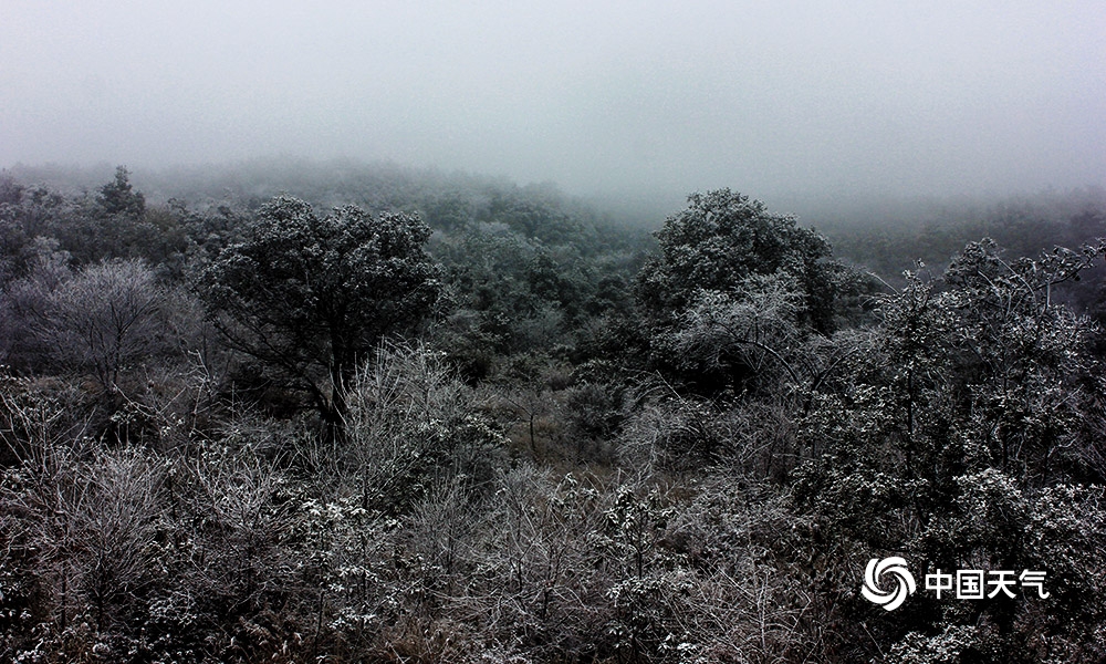 不知庭霰今朝落,疑是林花昨夜开。一夜之间富源县三道箐林场披上了白色的嫁衣,一花一草一树被薄薄的白雪笼罩着,令人陶醉。受冷空气影响,12月18日,富源县最低气温骤降至-1.5℃,高海拔地区降下小雪。图为12月18日拍摄于富源县三道箐林场。 (文/图 胡保润 余芳艳)
