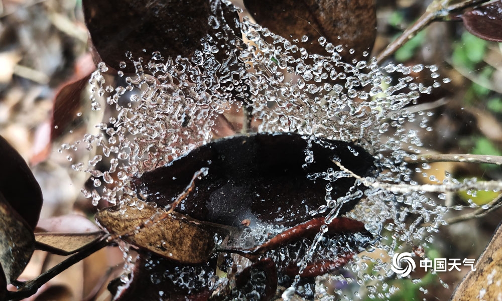 受冷空气影响,曲靖市富源县1月8日最低气温将至零下2.8℃。一夜之间,小水珠变成了晶莹剔透的小冰珠,镶嵌在叶子上、小草上、蜘蛛网上,美丽至极。(图文/余芳艳)