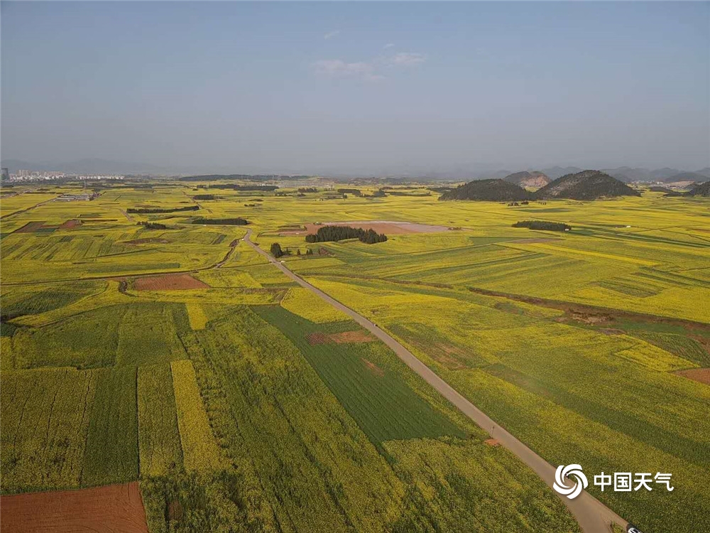 去冬今春以来,云南省罗平县水汽充沛,光照充足,当地油菜花长势良好。