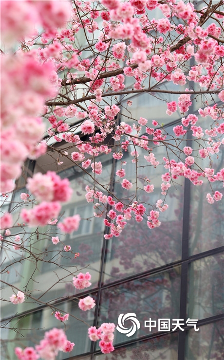 在曼妙的春光里,昆明市区和石林多地樱花盛放,一团团樱花灿若云霞,明艳动人。