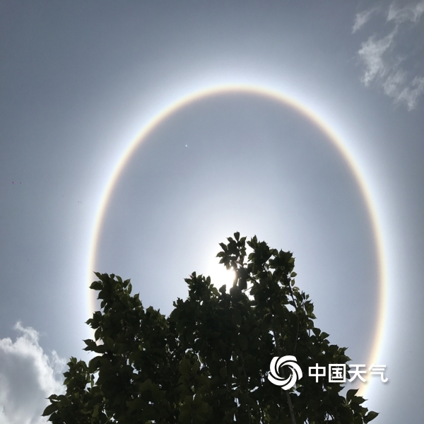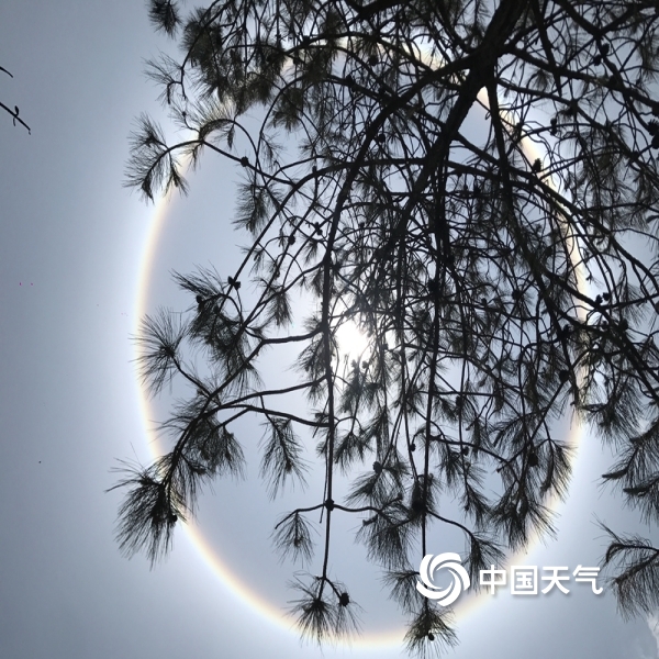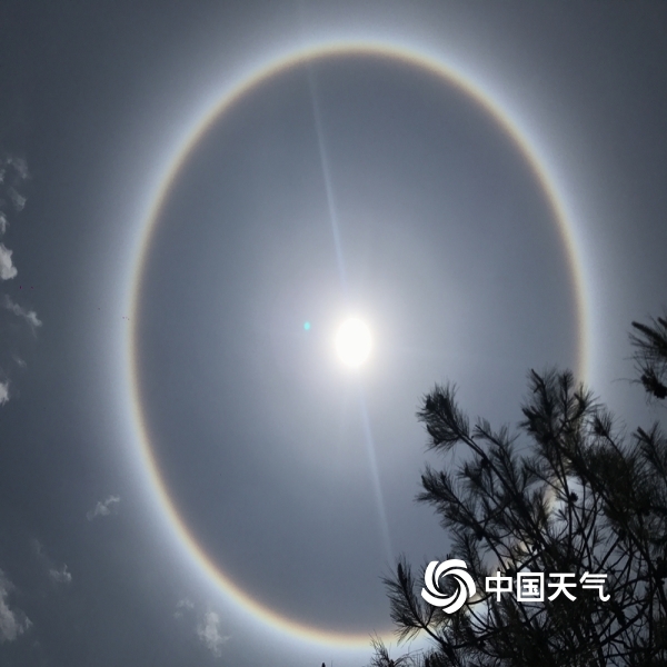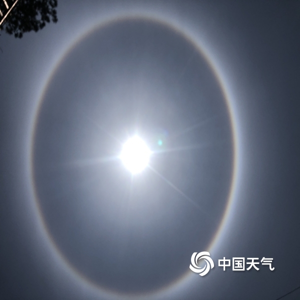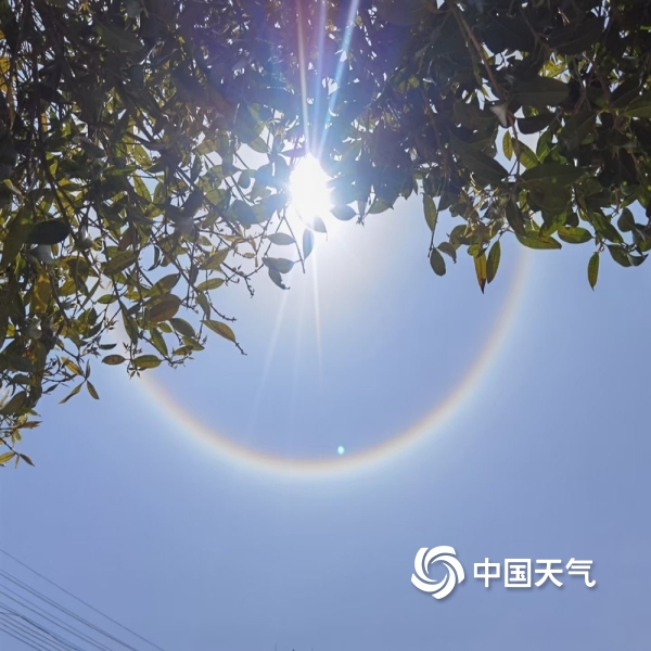 中国天气网讯四月的最后一天,云南迪庆维西县和丽江古城区出现了日晕奇观。太阳周围的彩虹五彩斑澜,给初夏的丽江和维西添了一抹神秘色彩。图为维西日晕。(图 文/唐超)