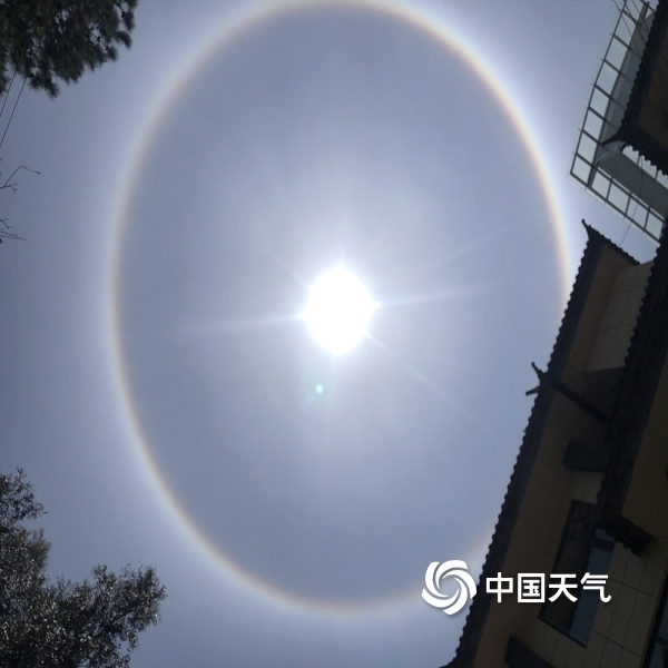 2021年05月01日 10:13四月的最后一天,云南迪庆维西县和丽江古城区出现了日晕奇观。太阳周围的彩虹五彩斑澜,给初夏的丽江和维西添了一抹神秘色彩。图为维西日晕。(图 文/唐超)