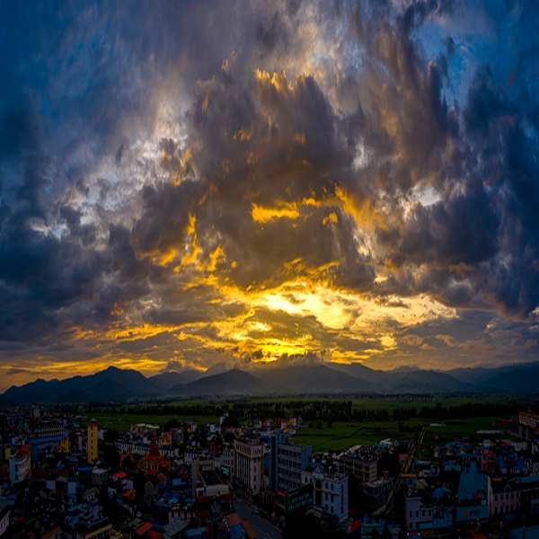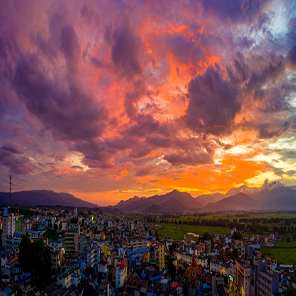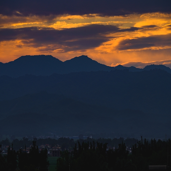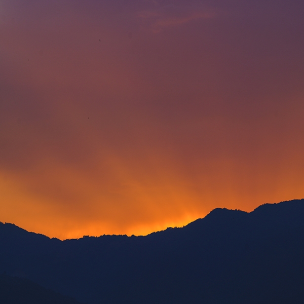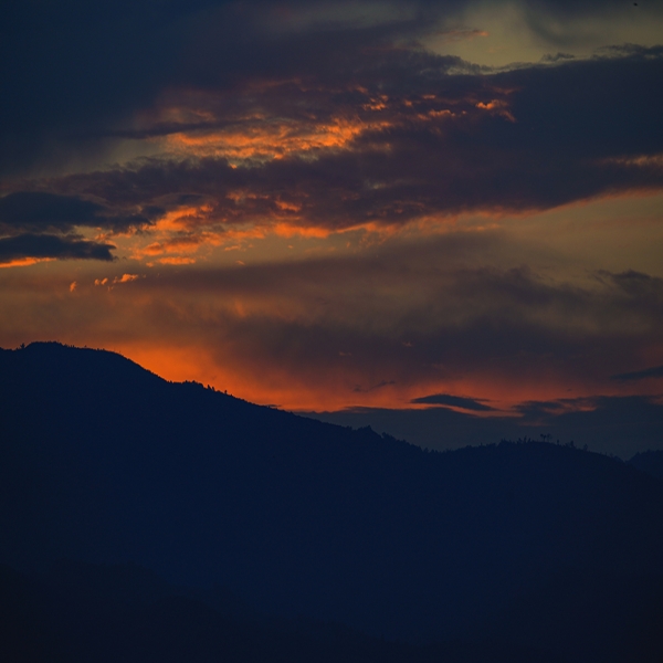 云南省陇川县近期多雷雨天气,日落时分,天空放晴,阳光通过厚厚的大气层被大量的空气分子散射,橙色的晚霞宛如火烧云一样形状多变,颜色绚烂而壮美。(图/罗增文 文/刘怡)