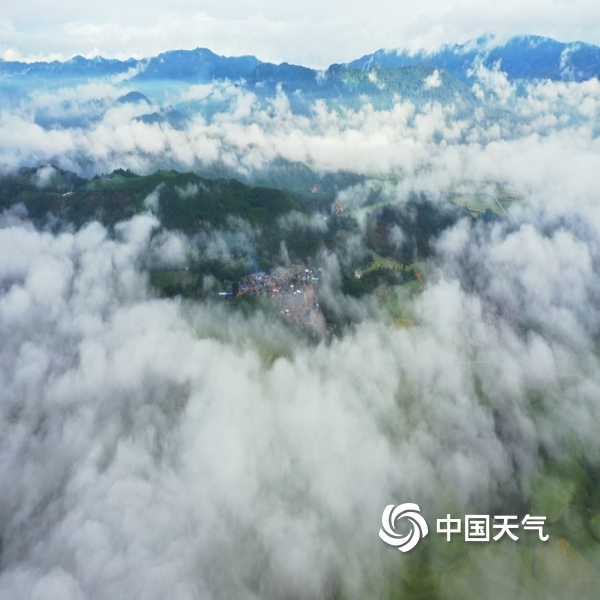 2021年10月26日 15:30早晨,从户撒大地的高空俯瞰下去,洁白的云团像抹布一样,将天空、山峦、村寨清洗了一遍,天蓝碧野,油绿色田坝与蓝色阿昌族新居相依相伴,户撒的风景如版画一样清新旖旎。