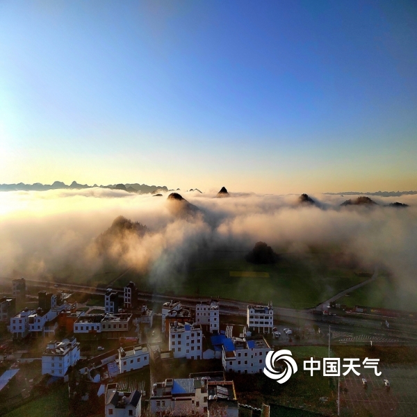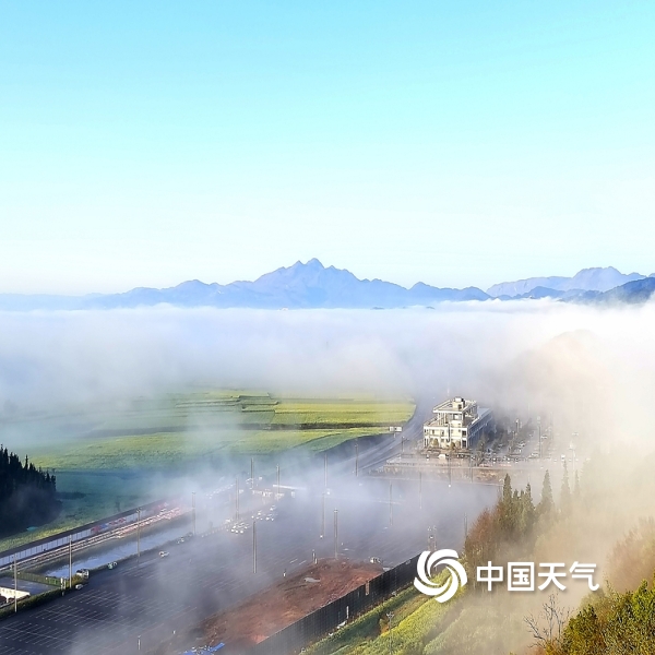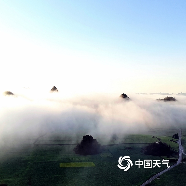 2022年02月07日 15:51云南罗平:晨雾缭绕,笼罩在村庄,房屋、油菜花若隐若现,如梦如幻