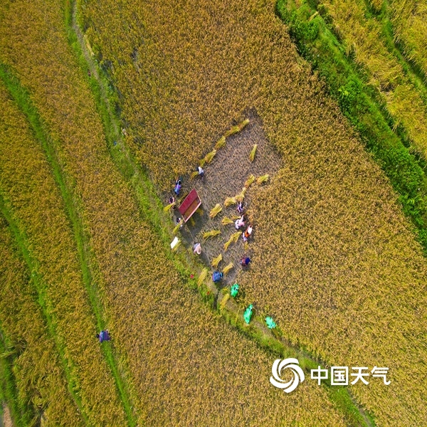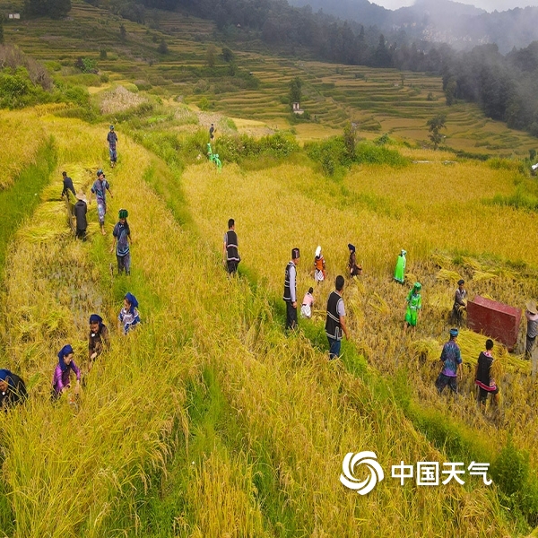 2022年10月18日 15:34哈尼梯田上一片繁忙的景象(邓娇 摄)