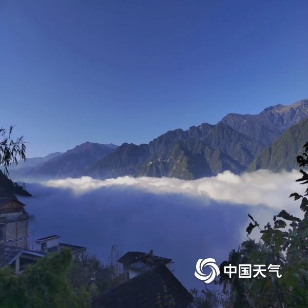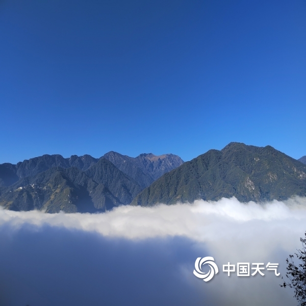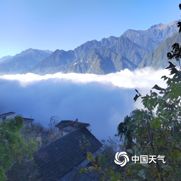 2022年11月10日 11:18今日(11月10日)早晨,福贡县城上空出现“云海”,在高山上俯看云层,白云平铺万里,如临于大海之滨,远处几座山峰露出云端,犹如人间仙境。(图/王凤兰,文/和燕铭)