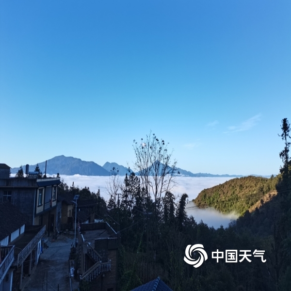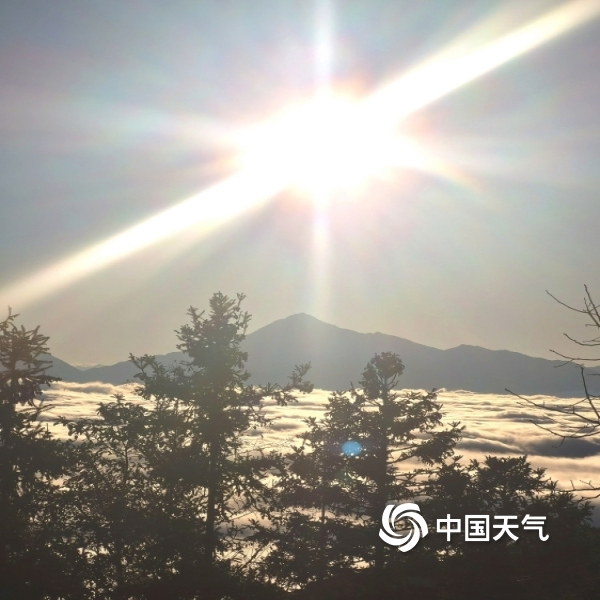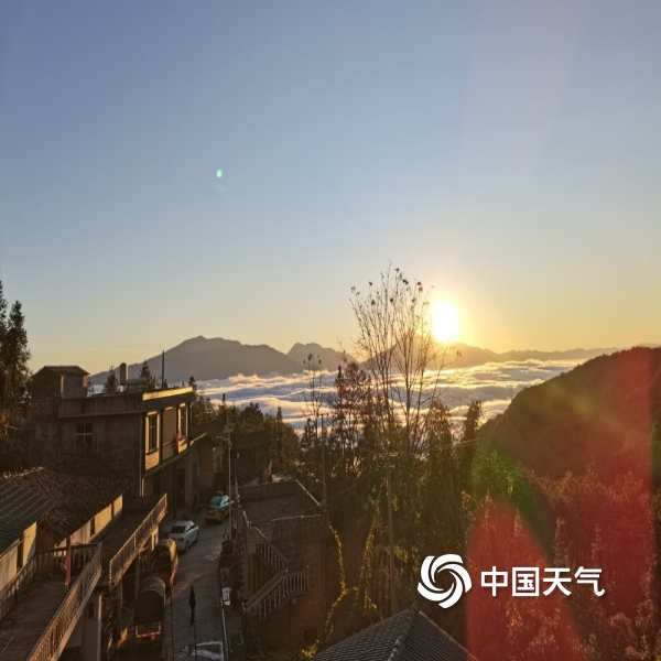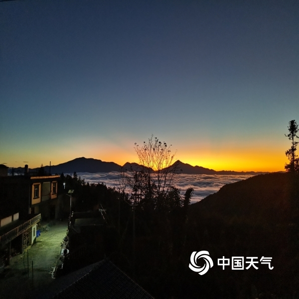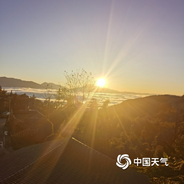 冬日文山朝暮云海变幻多样,晨曦中飘逸温柔,日暮下日月同辉金色华丽,尽显山峦起伏中每日婀娜多姿换妆之美。(图文/冯德花)