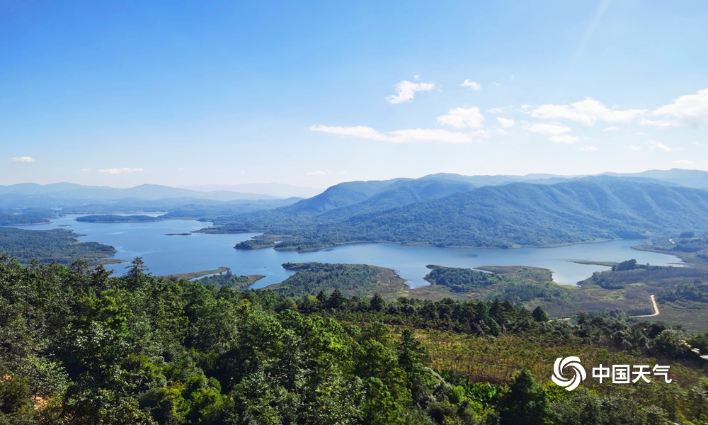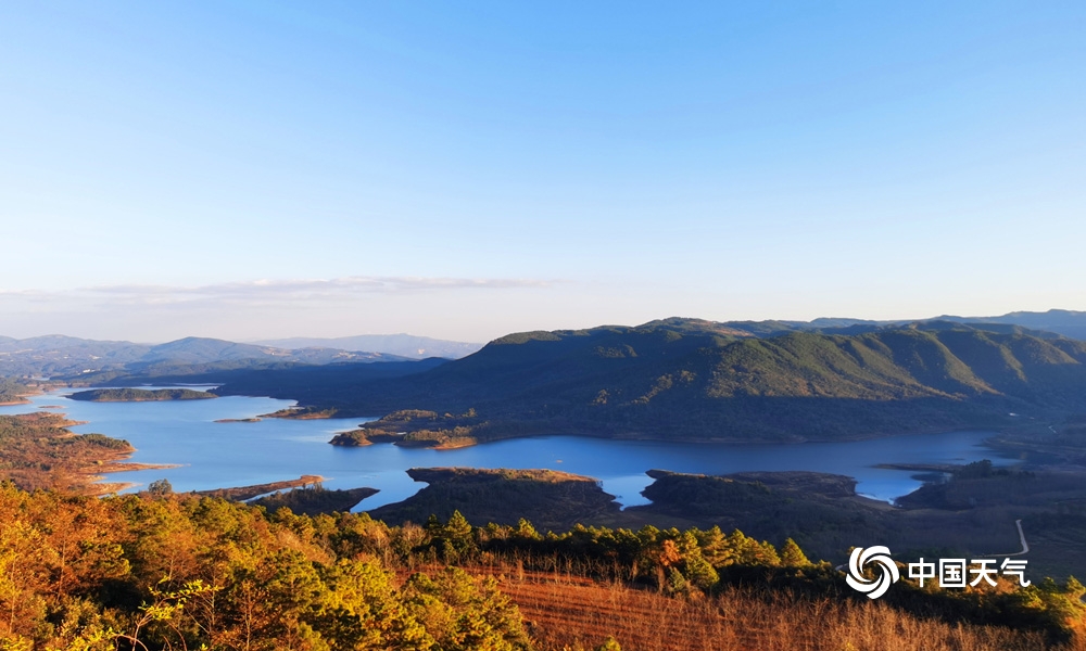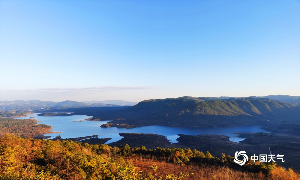一池清水映云天,奔流百里润昆明。四季云龙水库呈现不一样美景,远远望去一条巨龙镶嵌在神州大地上,山水交融绘就一幅绿水青山的生态画卷。(摄 齐玉星)
