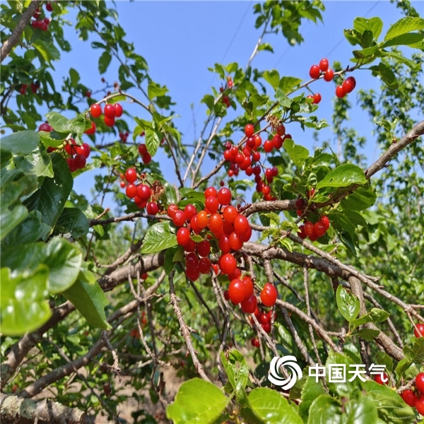 2023年04月13日 15:35初夏的富民县阳光明媚,位于富民县“樱桃之乡”赤鹫镇的4000余亩樱桃已陆续成熟,樱桃树枝头挂满一串串“红珠”,吸引了众多游客前来采摘。(图/董凌辰)