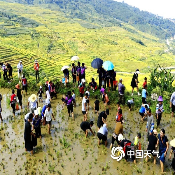2023年09月07日 10:39金秋时节,稻谷金黄。9月2日红河县举办第四届农民丰收节,高山上的农民们开始喜悦劳作,丰收的喜悦洋溢在每个人脸上,是辛勤劳动的美好回报,也是希望的象征。农民们展示了新时代农民的精神风貌和生活态度,传承了农耕文化。图/王桥银、白红志 文/许建能