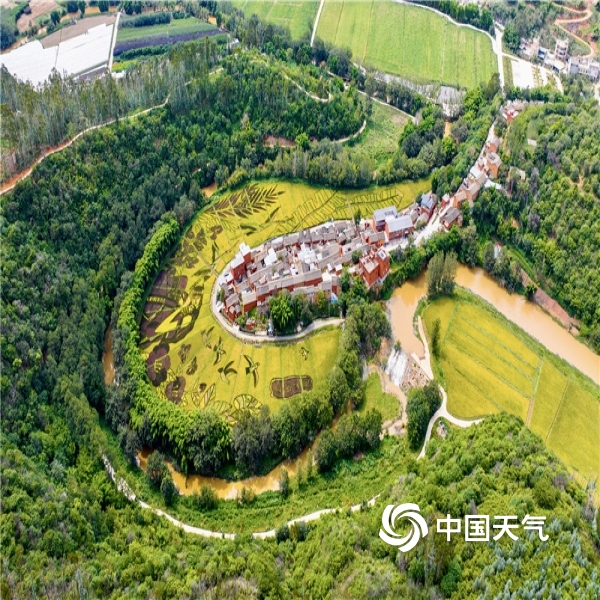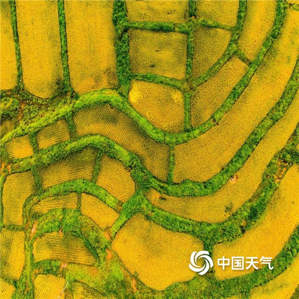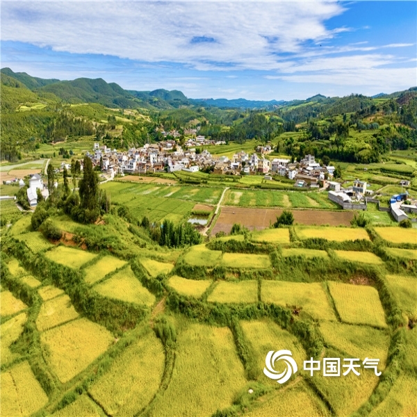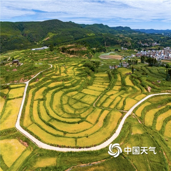 2023年09月21日 10:55当前已进入秋季稻谷收割期,在蓝天白云映衬下,稻穗黄、青山绿及彩色主题稻田画共同构成一幅天然美丽的乡村图景。图为摄9月20日摄于云南省宜良县。(图/陈秋芳;文/王永明)
