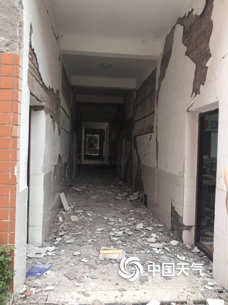 震后四川宜宾市长宁县双河镇双河中学树倒房塌