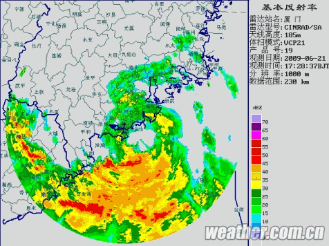 2009年6月18日下午,今年第3号强热带风暴“莲花”在南海北部生成。生成初期,“莲花”廻旋少动,19日逐渐转向稳定的偏北路径,强度缓慢增强,于20日11时加强为强热带风暴,20日午夜之后,其强度开始减弱,21日上午8时减弱为热带风暴。当日20时30分前后在福建省晋江市东石镇沿海登陆,登陆时仍维持热带风暴强度(中心最低气压985hPa,近中心最大风速23米/秒)。22日中午“莲花”中心从福建省连江县沿岸入海进入东海西部海域,当日下午减弱成为热带低压,在东海西部海域消失。【登陆时段雷达动画】